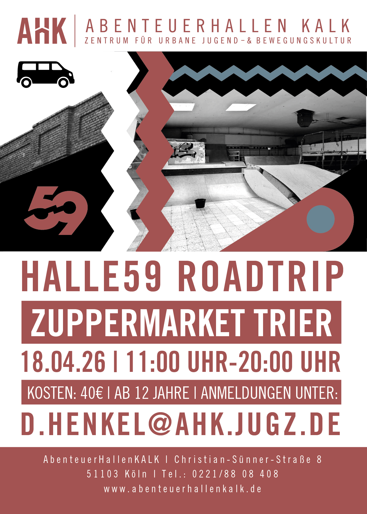 Ab dem 13.04.2026 gelten in der Halle59 die Sommeröffnungszeiten. Infos dazu auf unserer Website oder auf Instagram.